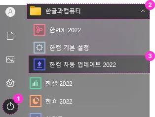 시작 > 한글과컴퓨터 > 한컴 자동 업데이트 2022 누르기