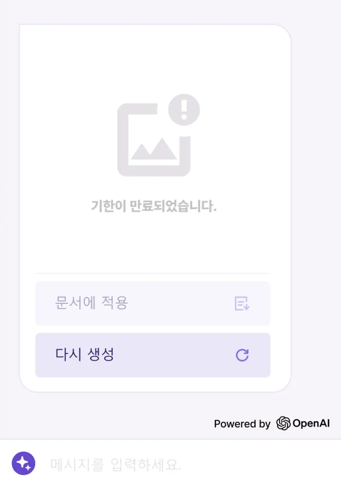 생성된 이미지는 1시간 동안 유지되며, 다시 생성 단추를 누르면 다른 이미지를 생성할 수 있습니다.