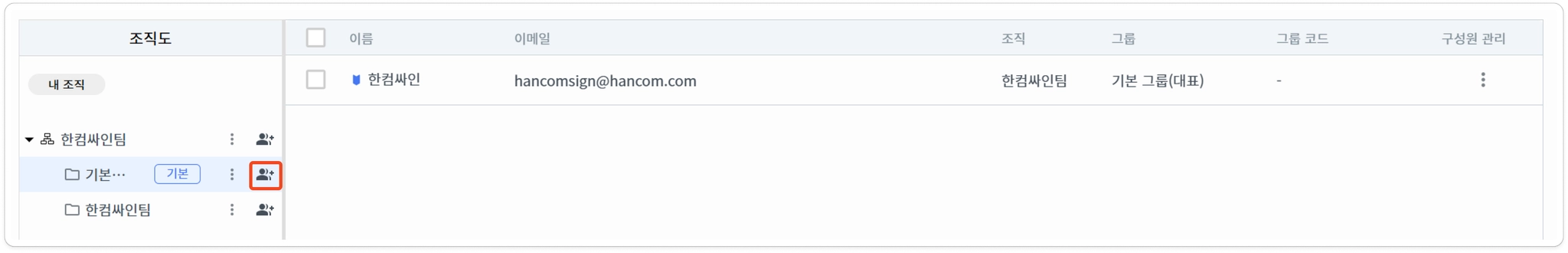 조직도 목록에 그룹이 추가된 것을 확인합니다.