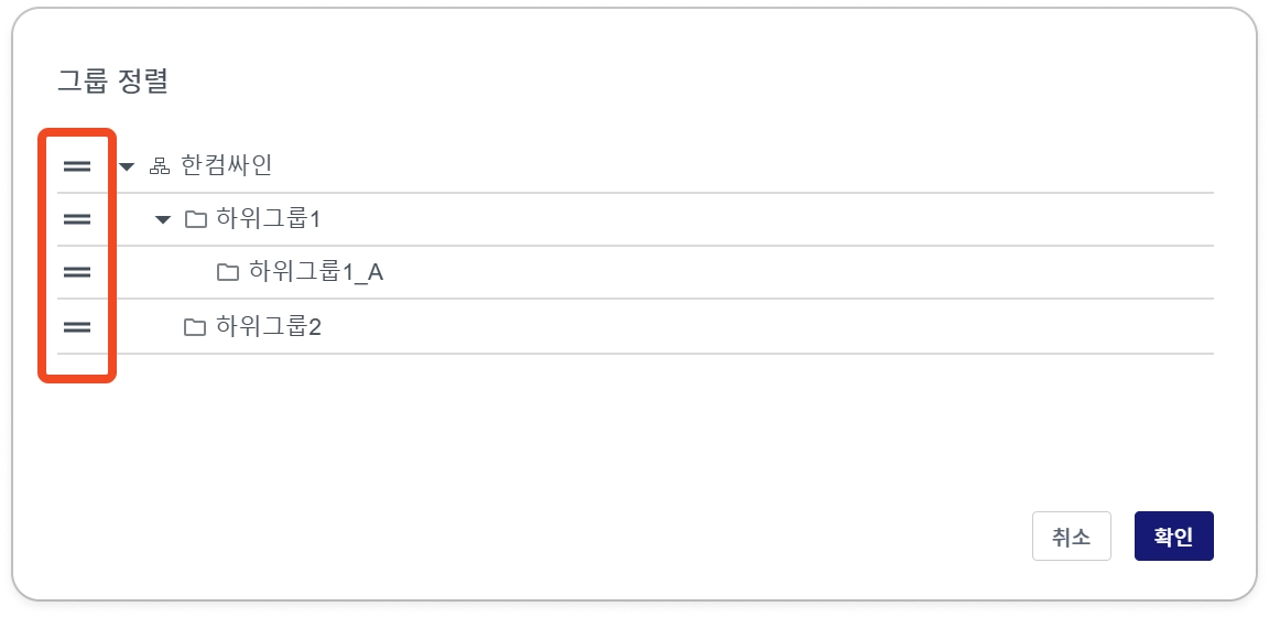 선택한 조직 내에서 그룹의 위치를 조정하는 기능입니다.