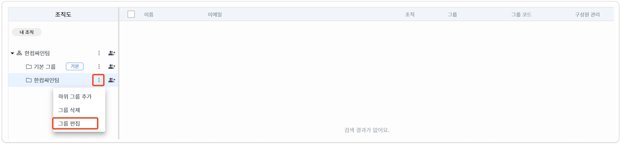 조직도 목록에 그룹명이 변경된 것을 확인합니다.