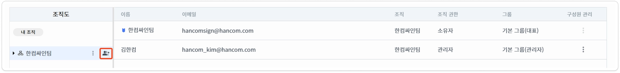 선택한 조직 또는 그룹의 구성원 정보를 확인할 수 있는 영역입니다.