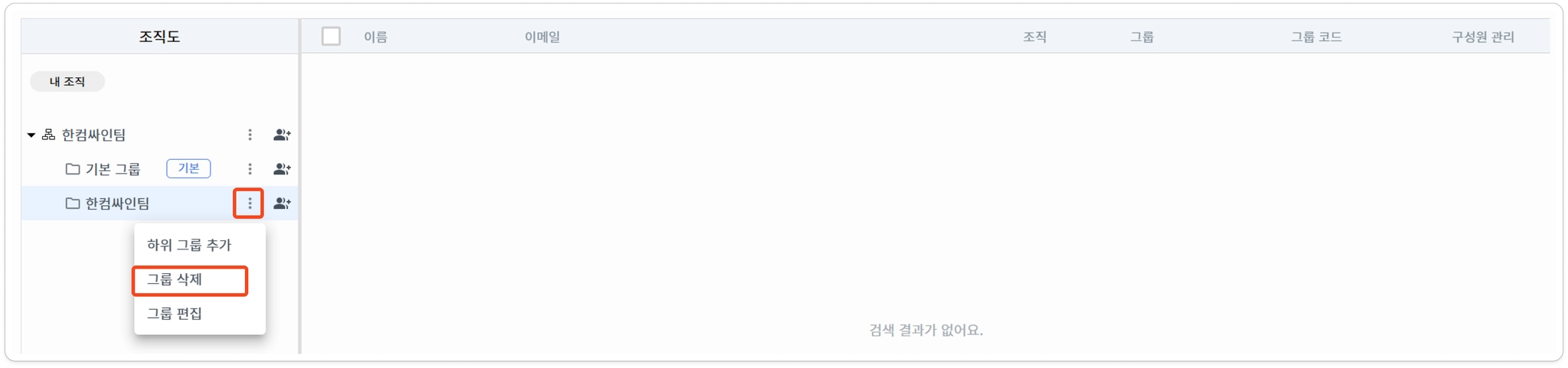조직도 목록에 그룹이 삭제된 것을 확인합니다.