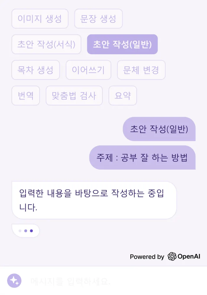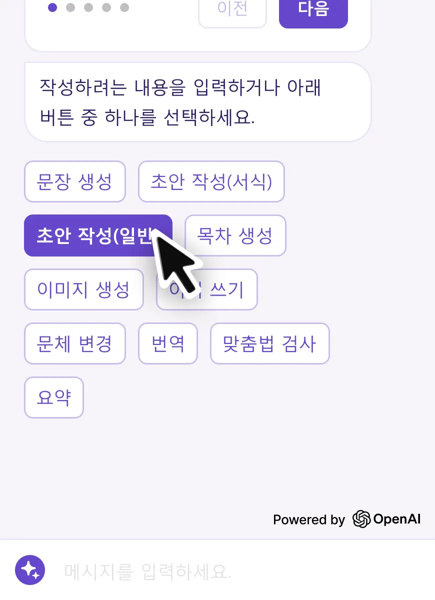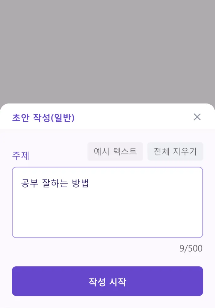 작성하고자 하는 초안을 작성하면 AI가 자동으로 초안을 생성합니다.
