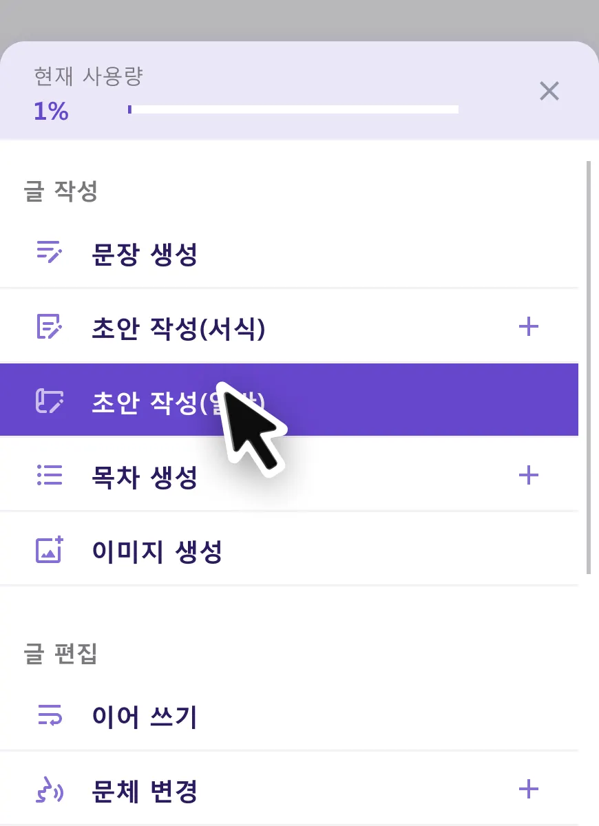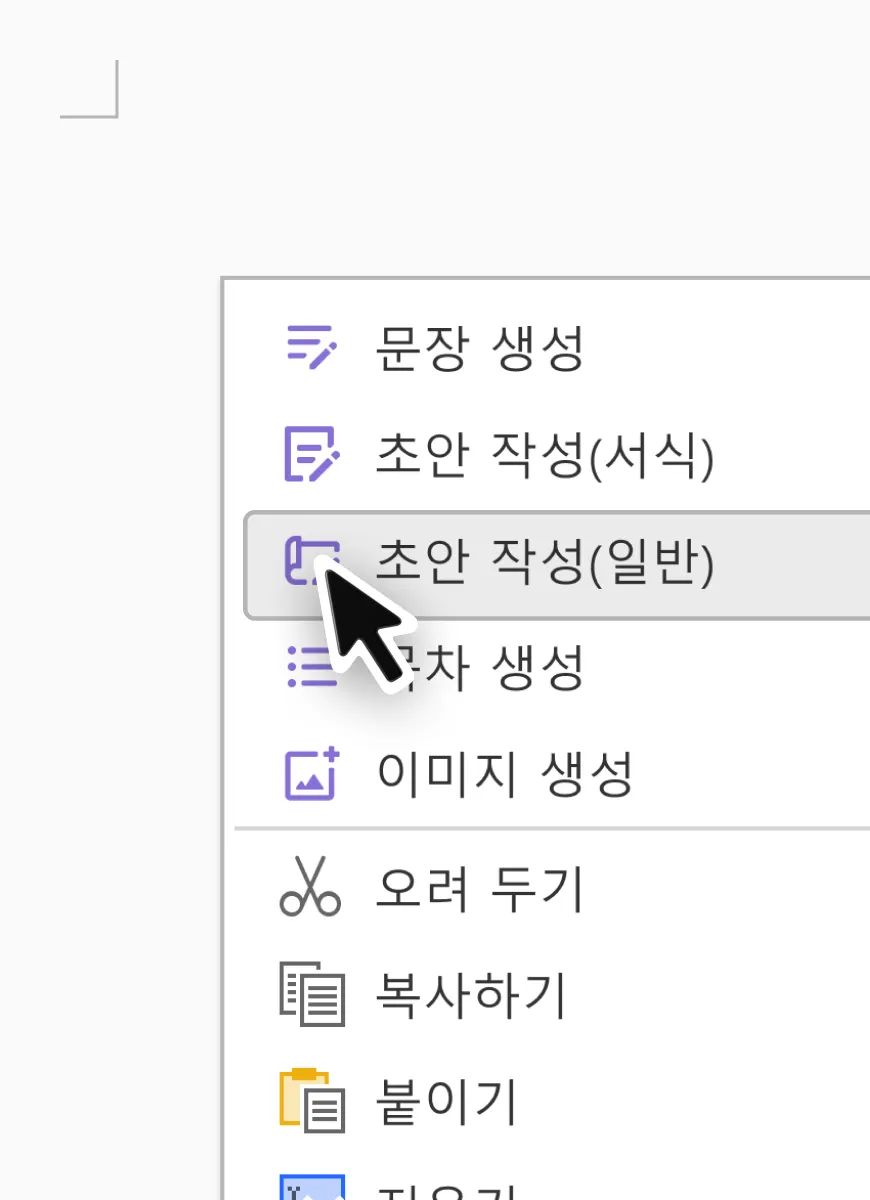 초안 작성(일반)은 아래의 순서를 통해 사용할 수 있습니다.