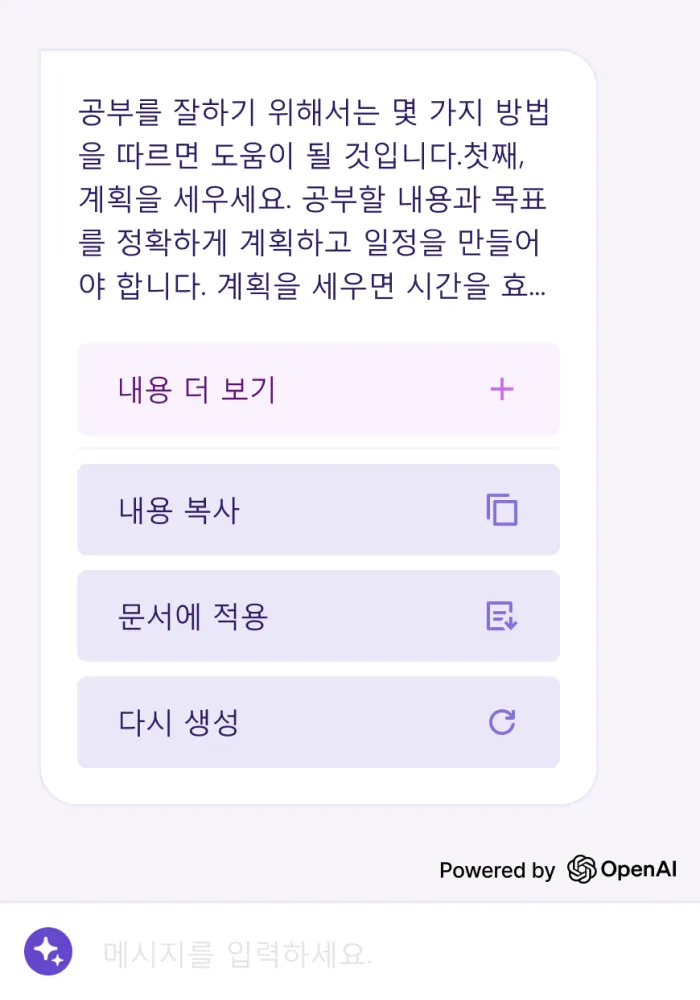 AI를 통해 작성한 문장이 생략되어 표시될 경우 내용 더 보기를 통해 전체 내용을 확인 할 수 있습니다.