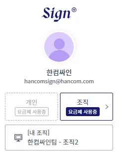 조직 기능을 사용 중인 조직 소유자나 구성원이 이곳에서 서명을 요청하거나 문서를 보관하면 해당 문서나 작업이 조직에 공유되지 않아 보다 편리하고 안전하게 서명을 요청하고 문서를 보관할 수 있습니다.