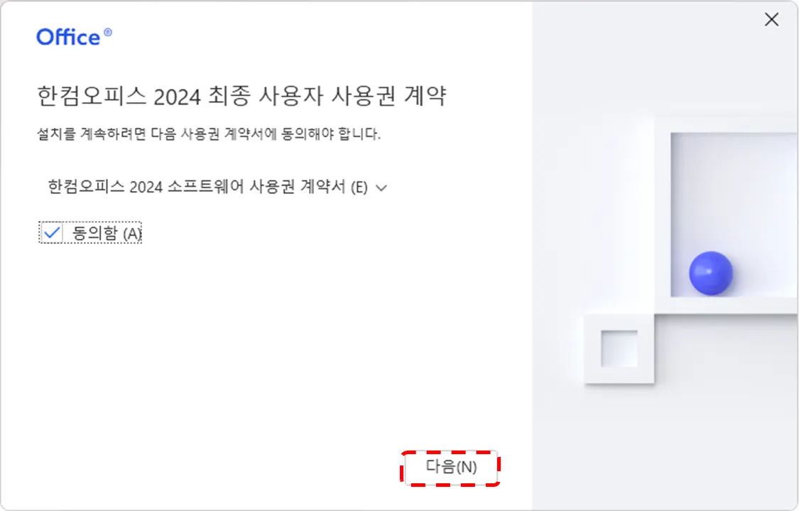 한컴독스에서 한컴오피스를 다운로드해주셔서 감사합니다. 아래와 같이 설치하여 한컴오피스를 보다 편하게 이용해보세요.