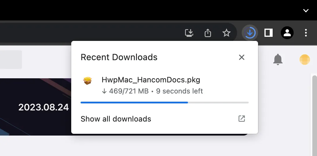 다운로드를 클릭하면 화면 상단에 실행 파일이 다운로드 됩니다. 파일을 클릭해주세요