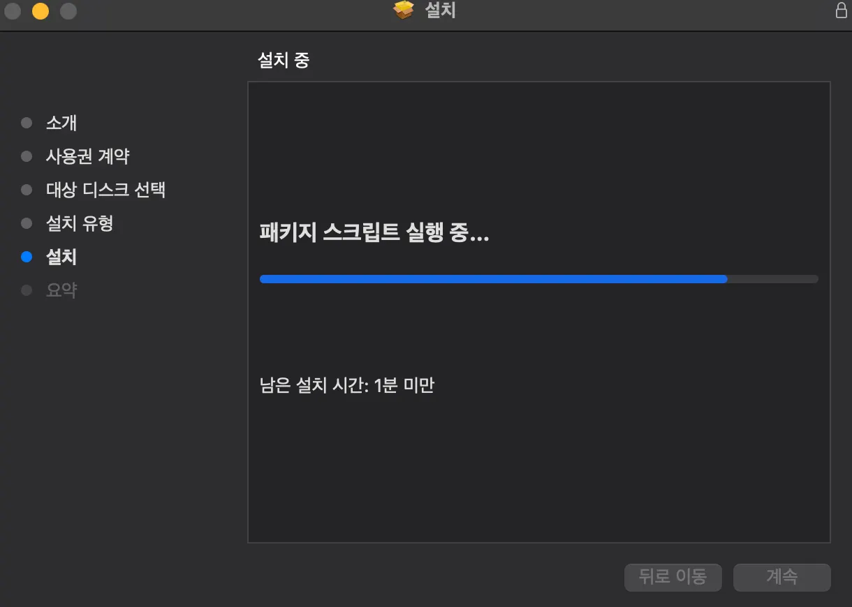 설치 진행중