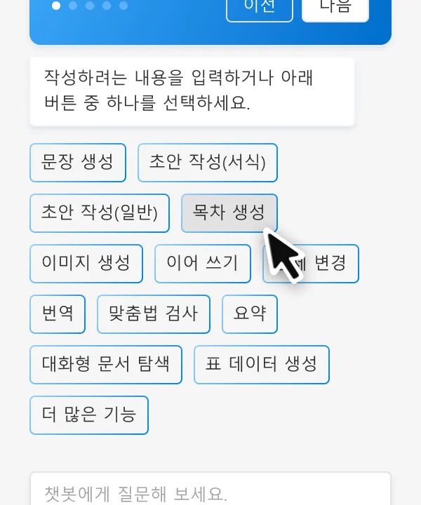 500자 이내 문장을 작성해서 바로 목차를 추출할 수 있습니다.