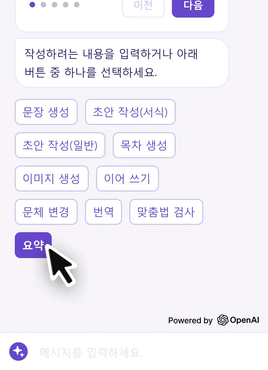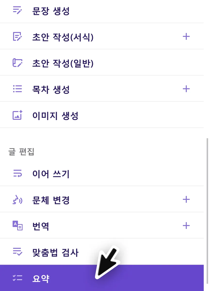 이외에도 요약된 문장의 문체 변경 / 맞춤법 검사와 같은 추가 기능도 이용 가능합니다.
