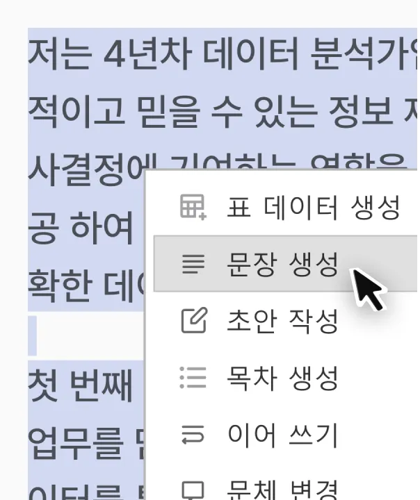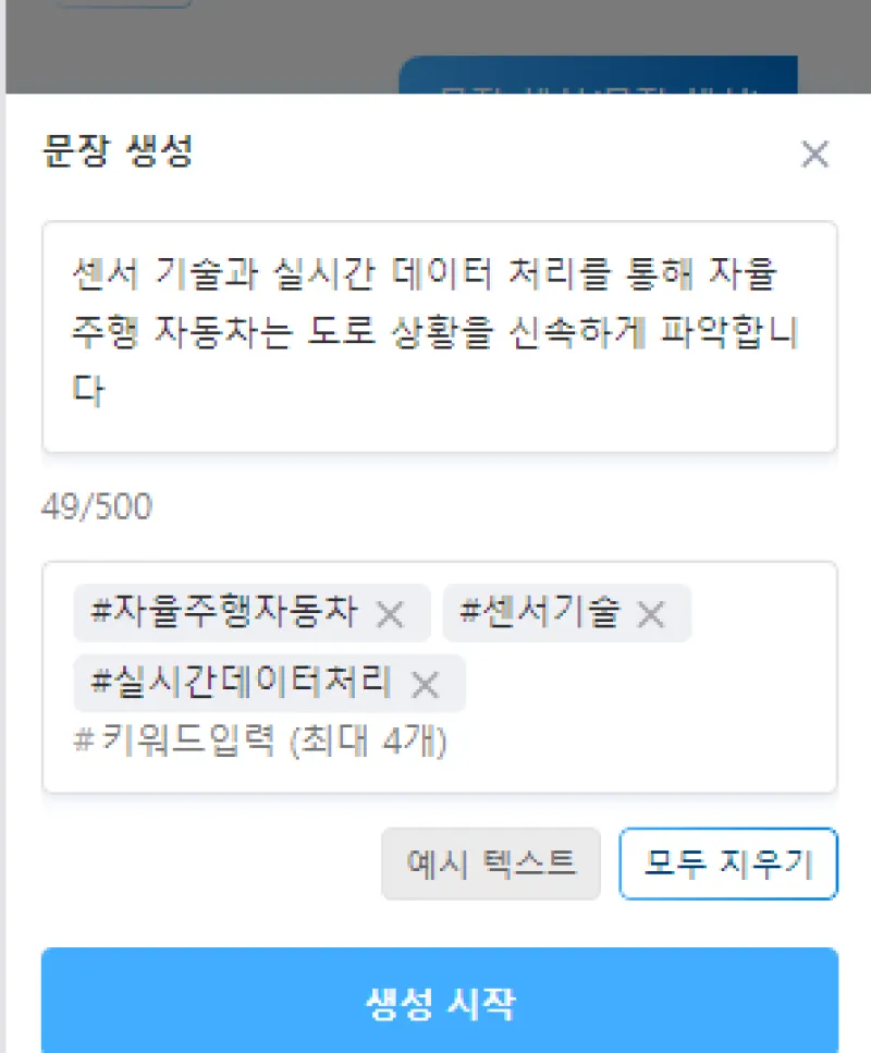 작성하고자 하는 문장의 주제를 단어 또는 문장으로 입력합니다.