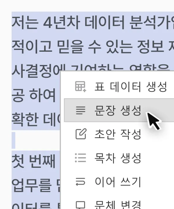작성하고자 하는 문장의 주제를 단어 또는 문장으로 입력합니다.