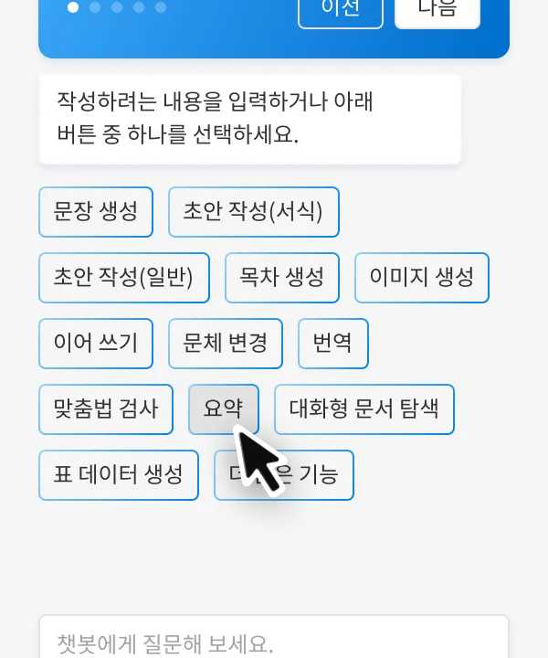 챗봇을 이용해서 문서를 요약할 수 있습니다.