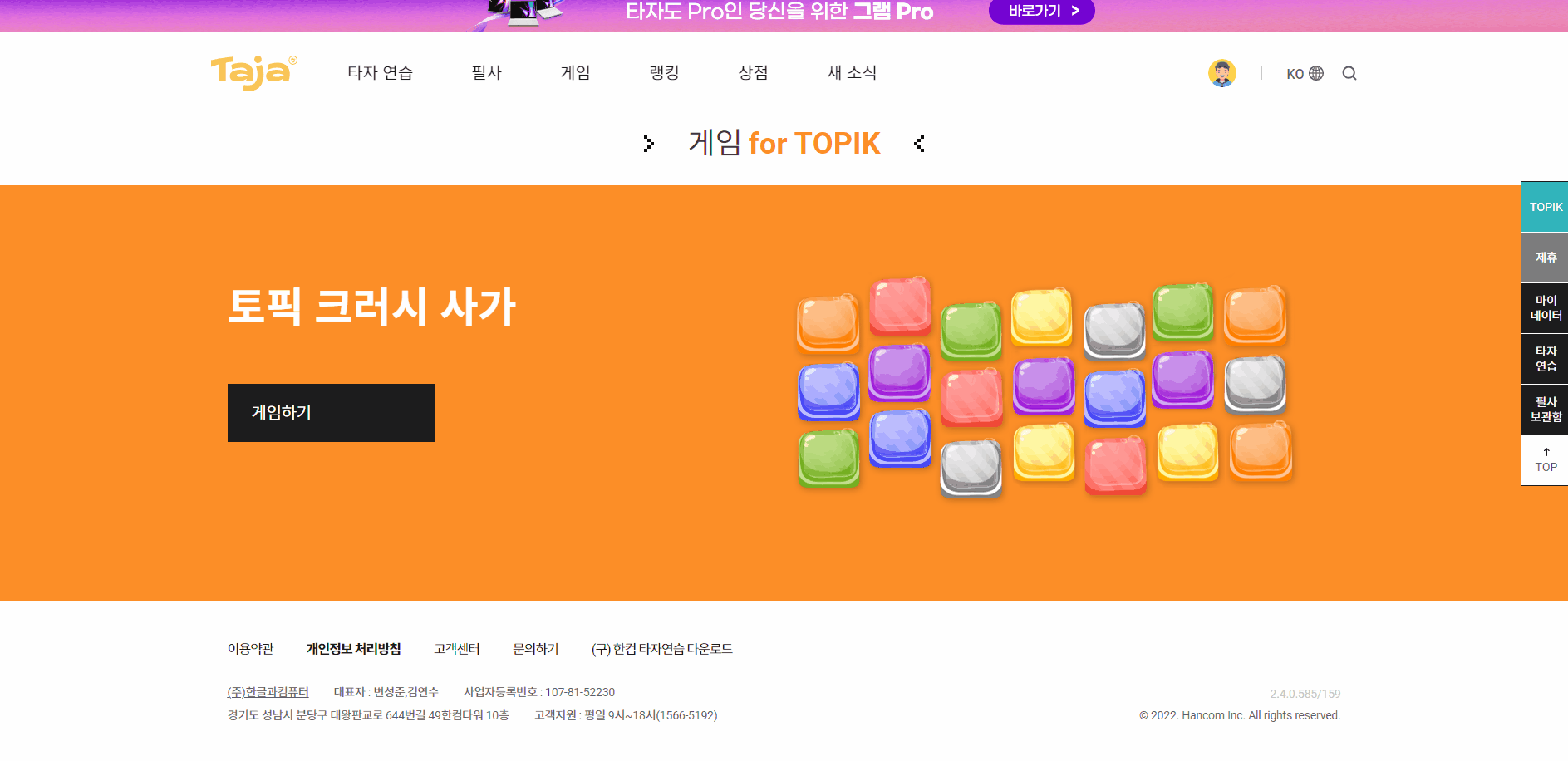 한컴타자에서는 토픽을 치르기 위해 반드시 알아야 하는 급수별 낱말과 단문, 장문을 재미있게 구성하여 제공해 드리고 있습니다.