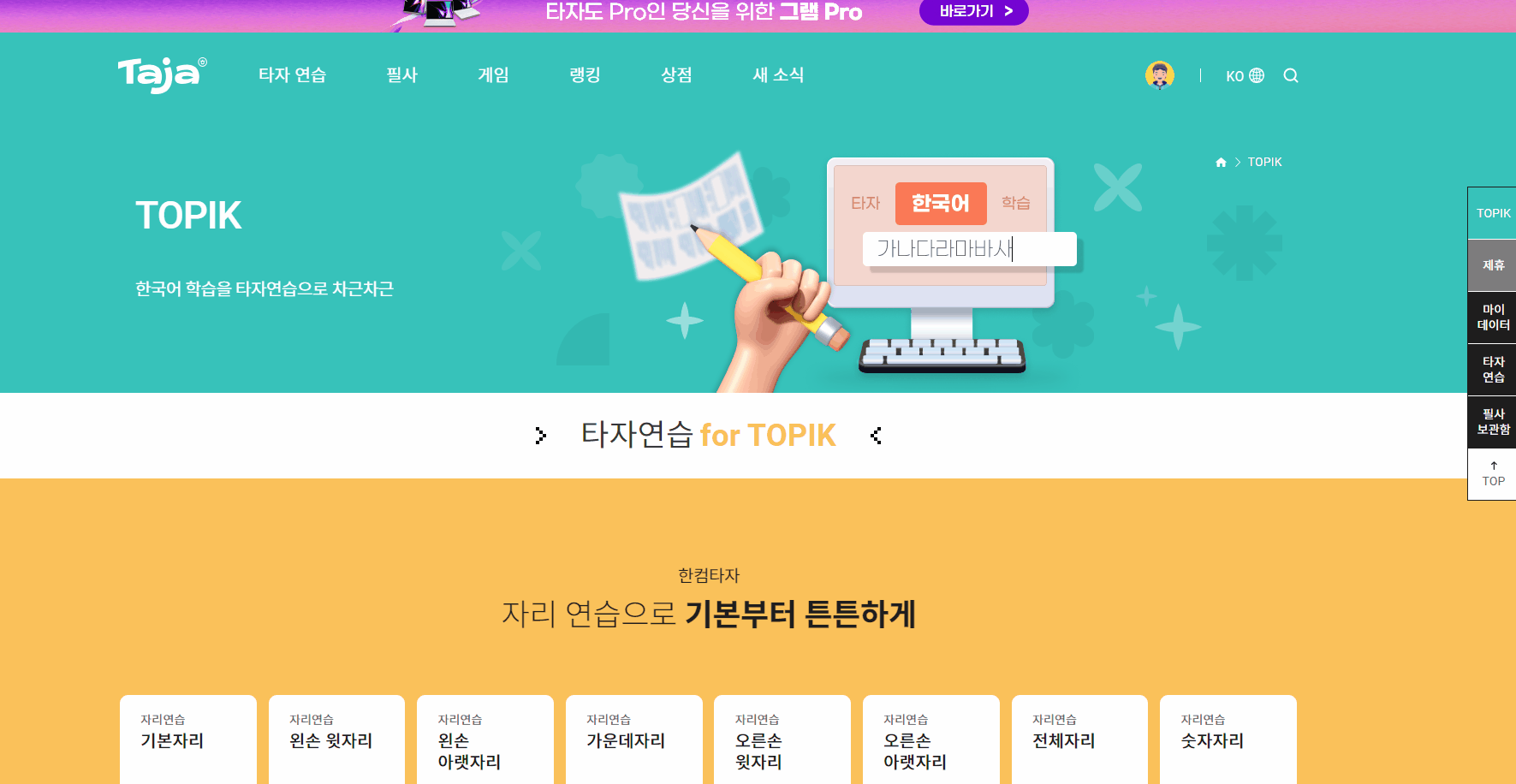 어떻게 토픽 타자 연습에 접근할 수 있는지 아래 ‘움직이는 도움말’을 통해 알아볼까요?