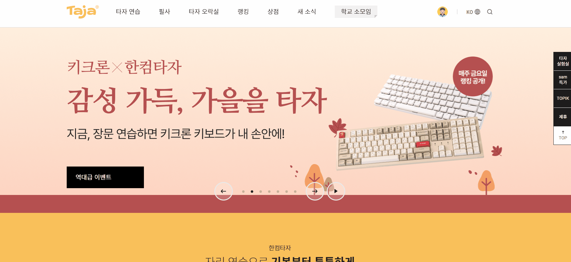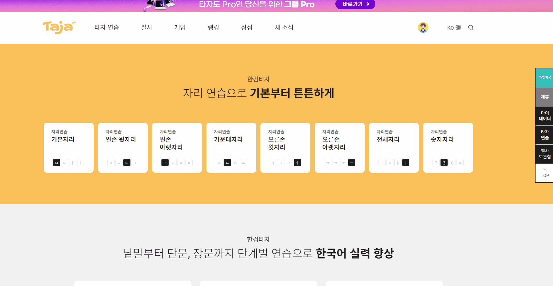 자리 연습을 통해 타건 감각을 익혀보아요!